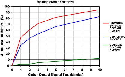 SuperCat™ Coconut Carbon reduced monochloramine from 3 ppm to non-detect levels. |