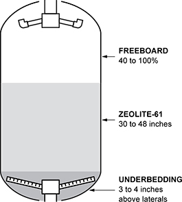 | The examples below illustrate the advantages of Zeolite-61 by comparing two systems designed for the same service flow; one system based on Zeolite-61, and one multimedia system (gravel, garnet, fine garnet, anthracite) Each system is based on best design practices for the respective media. |