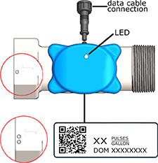 LED flashes as forward flow is sensed within meter. Flashing is proportional to the rate of flow sensed.